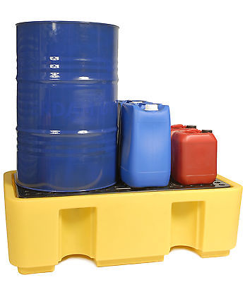 2 DRUM 250LTR OIL CHEMICAL BUNDED DRIP SPILL PALLET SUMP WITH REMOVABLE GRID [ENDED]