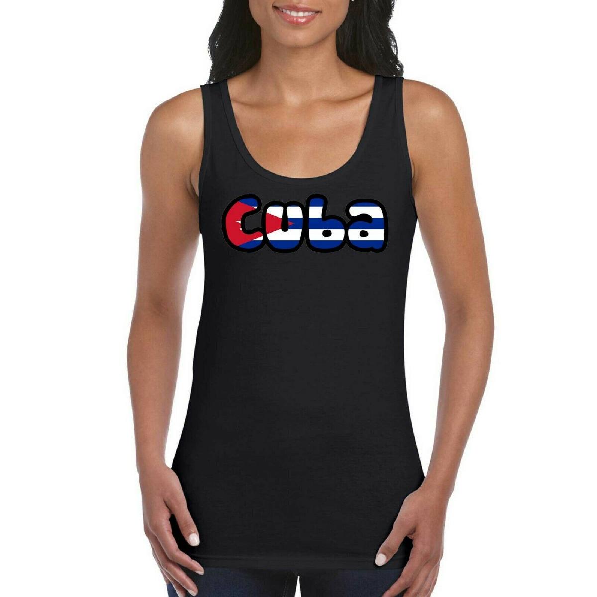 CUBA LOVE TEXT FLAG GIRLS WOMEN'S LADIES TANK TOP VEST T SHIRT BLACK [ENDED]
