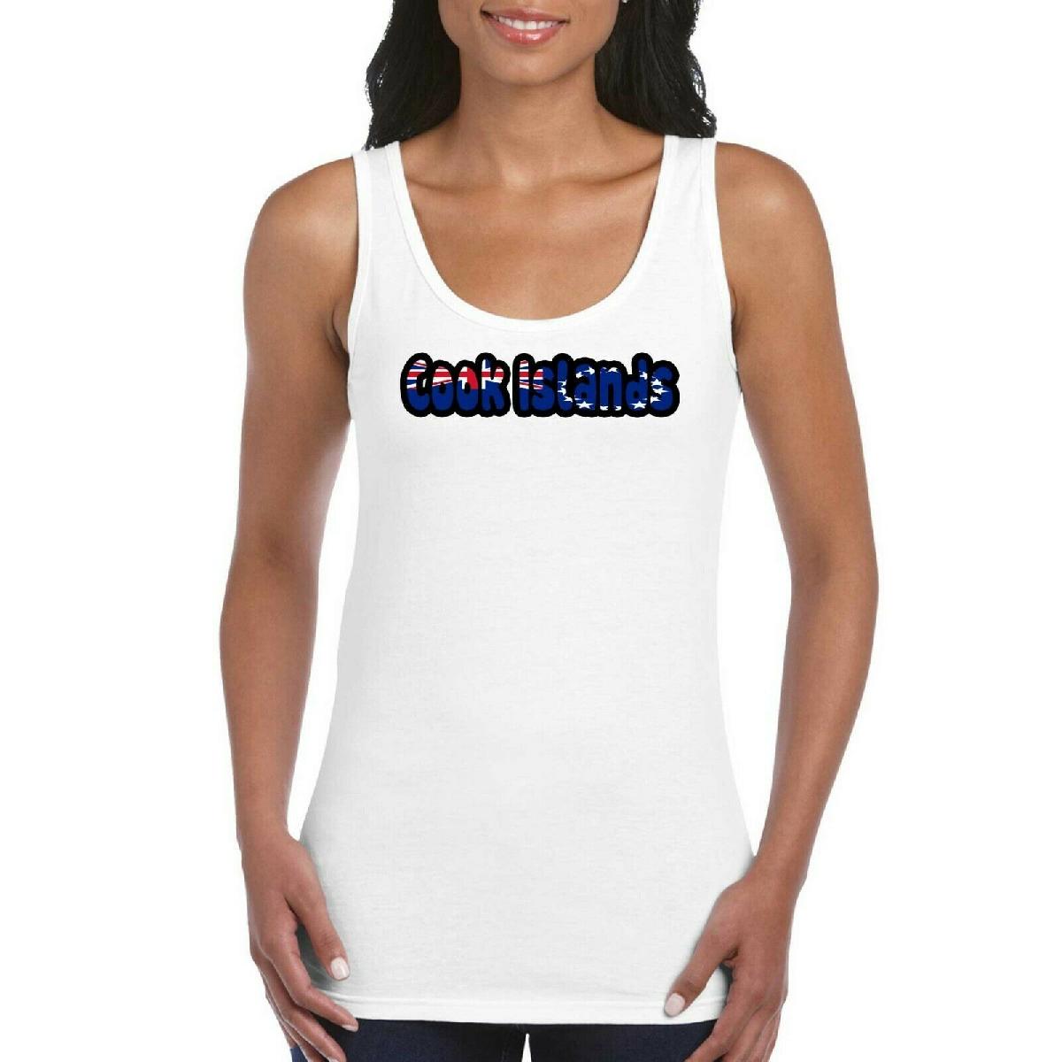 COOK ISLANDS LOVE TEXT FLAG GIRLS WOMEN'S LADIES TANK TOP VEST T SHIRT WHITE [ENDED]