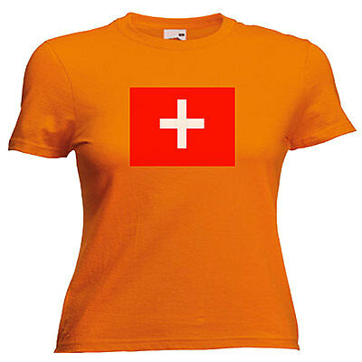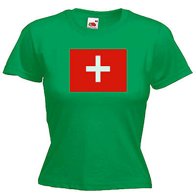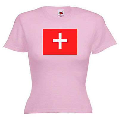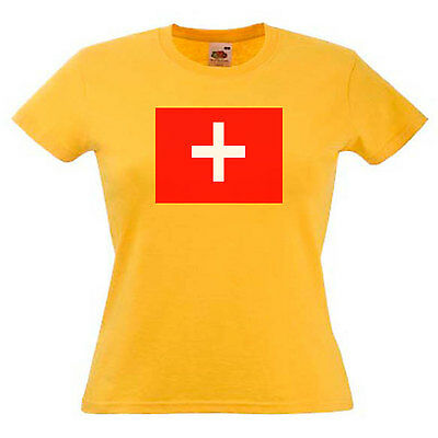 SWITZERLAND FLAG LADIES LADY FIT T SHIRT 13 COLOURS SIZE 6 - 16 [ENDED]