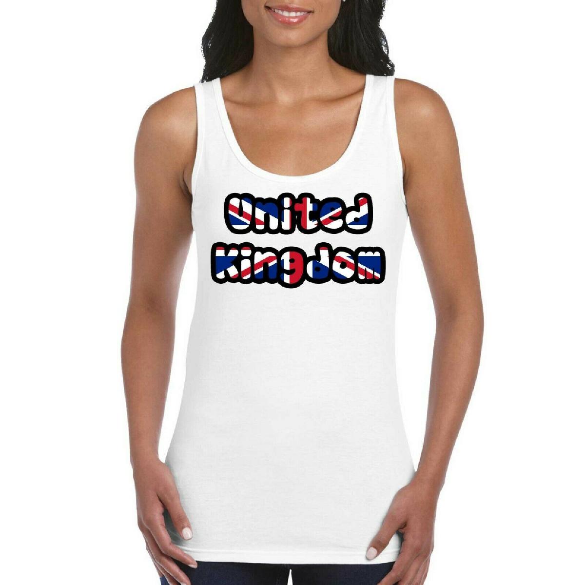 UNITED KINGDOM UK TEXT FLAG GIRLS WOMEN'S LADIES TANK TOP VEST T SHIRT WHITE [ENDED]