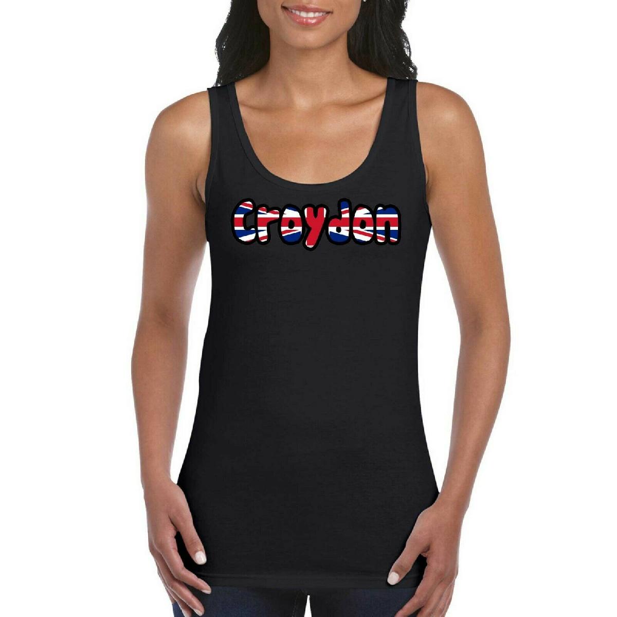 CROYDON UK LOVE TEXT FLAG GIRLS WOMEN'S LADIES TANK TOP VEST T SHIRT BLACK [ENDED]
