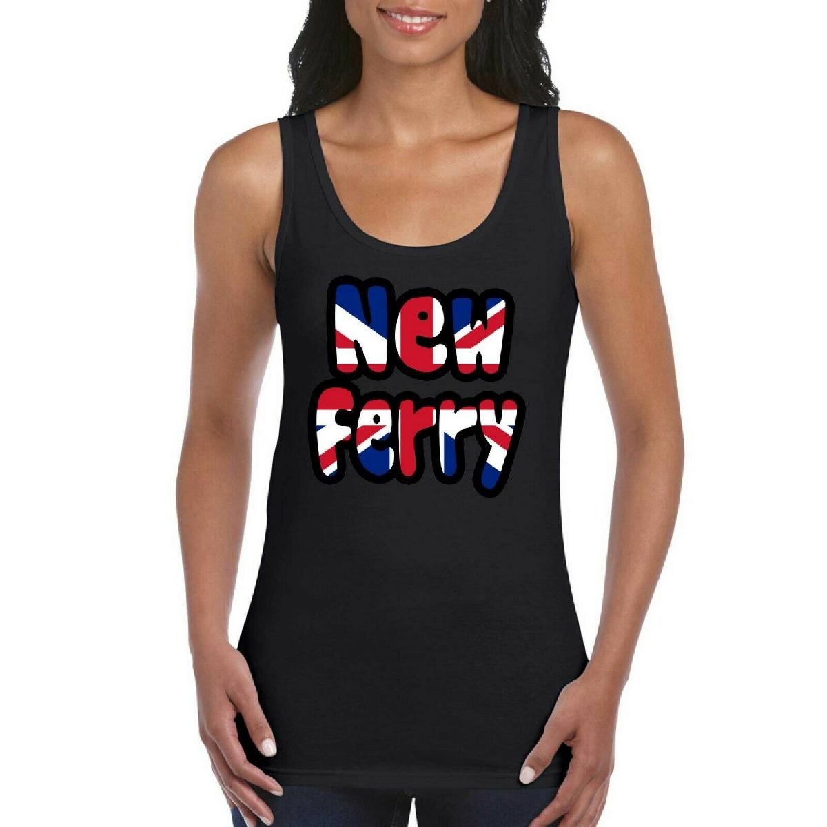 NEW FERRY UK LOVE TEXT FLAG GIRLS WOMEN'S LADIES TANK TOP VEST T SHIRT BLACK [ENDED]