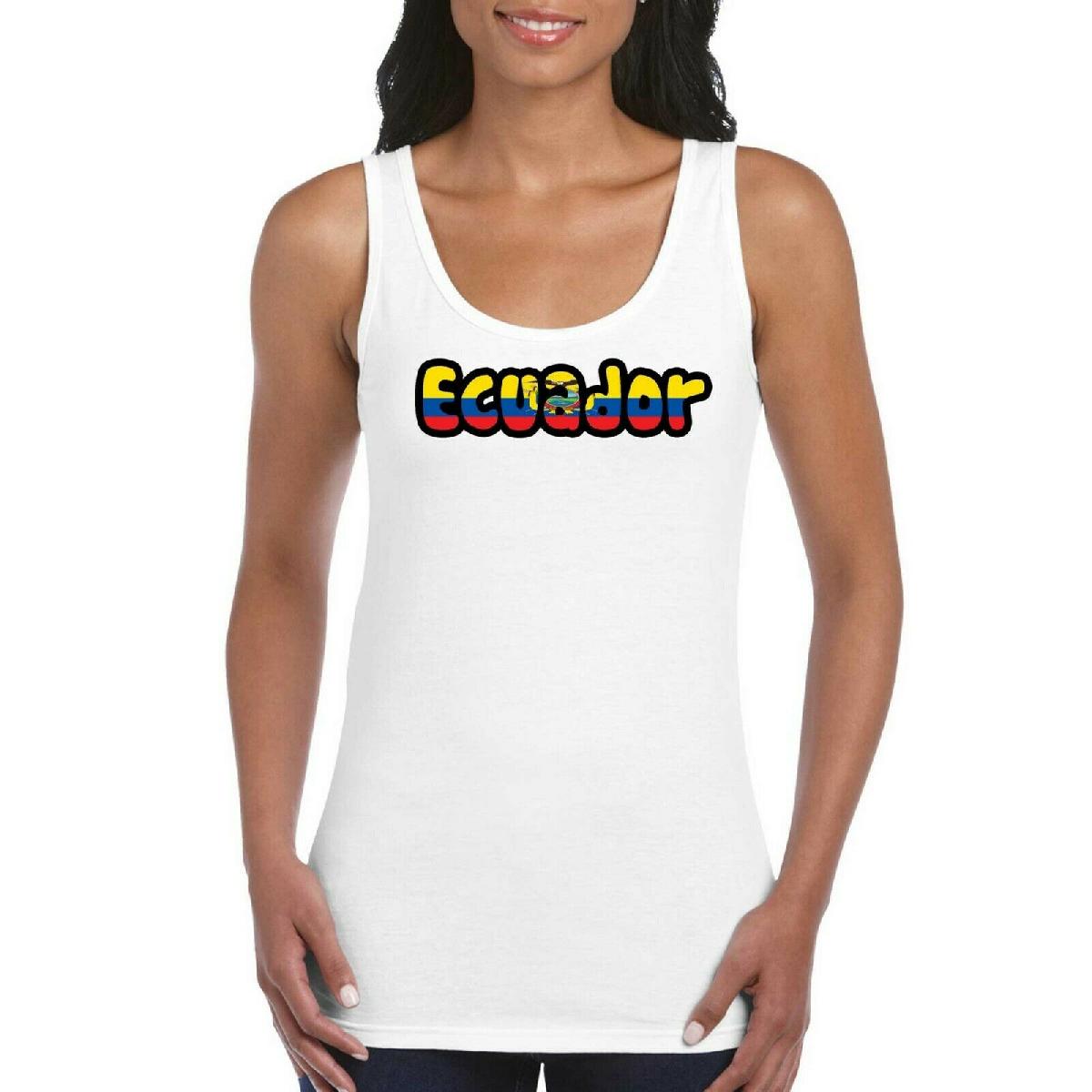 ECUADOR LOVE TEXT FLAG GIRLS WOMEN'S LADIES TANK TOP VEST T SHIRT WHITE [ENDED]