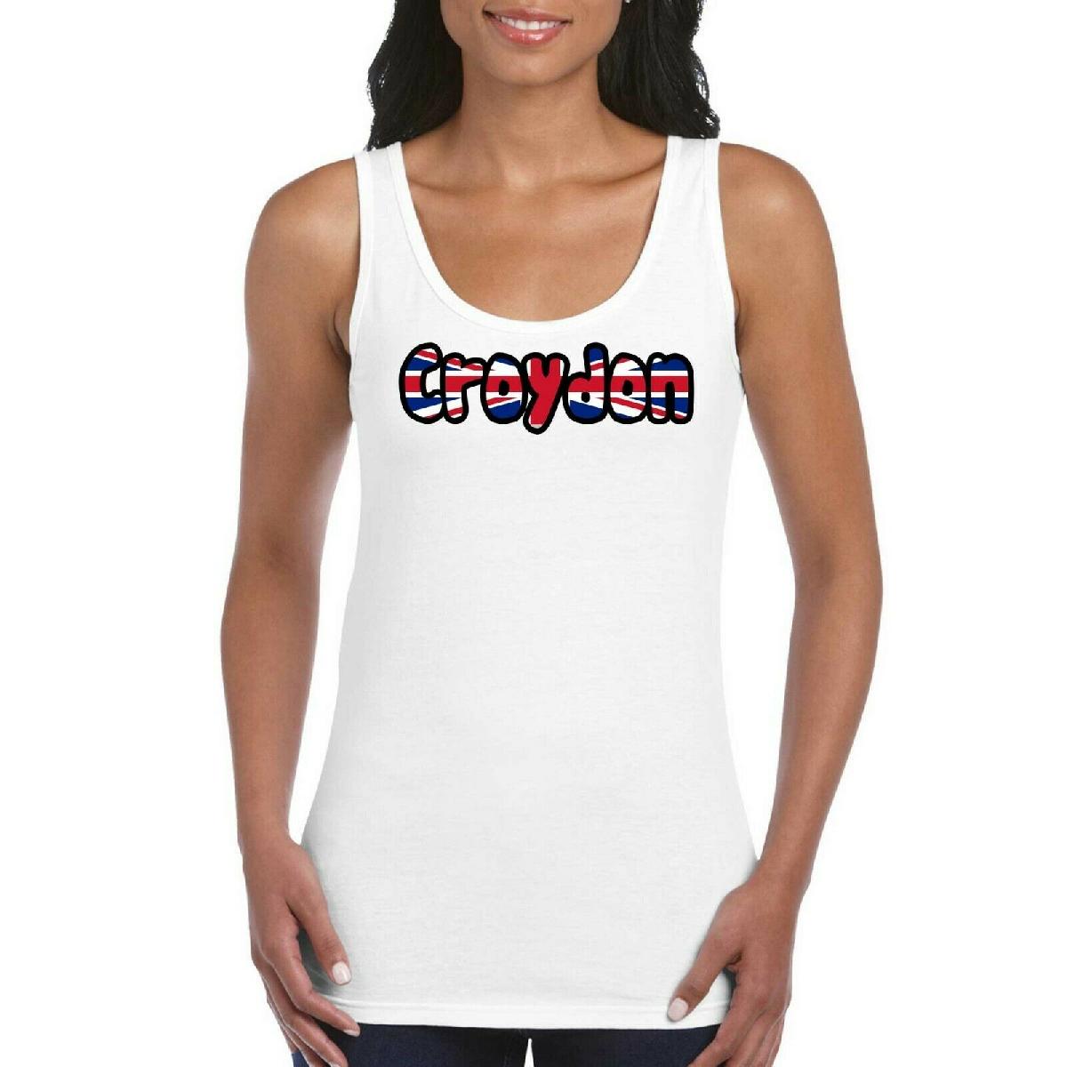 CROYDON UK LOVE TEXT FLAG GIRLS WOMEN'S LADIES TANK TOP VEST T SHIRT WHITE [ENDED]
