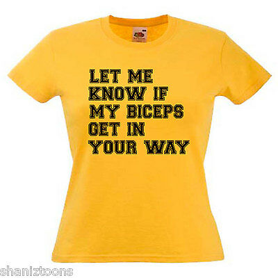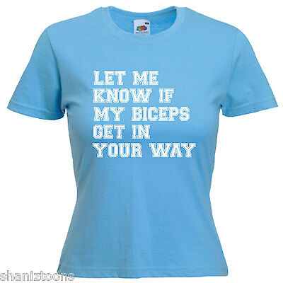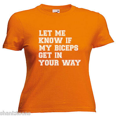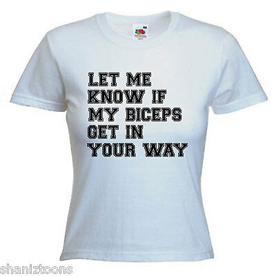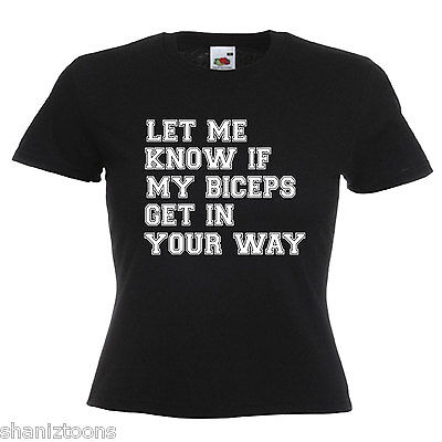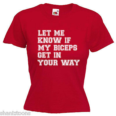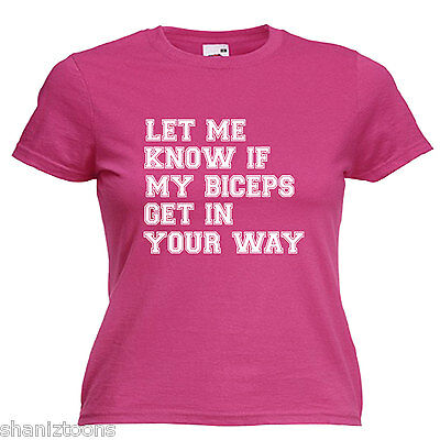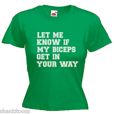 GYM BODYBUILDER SLOGAN BICEPS LADIES LADY FIT T SHIRT 13 COLOURS SIZE 6 - 16 [ENDED]