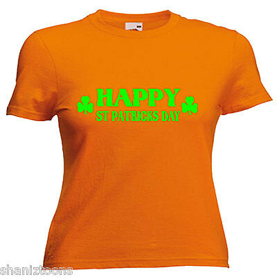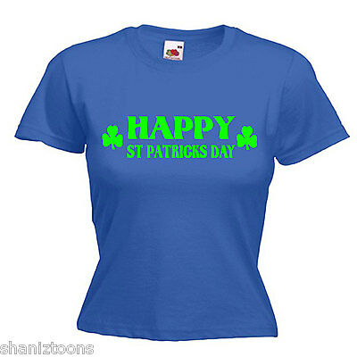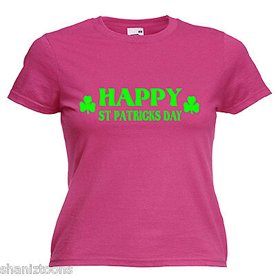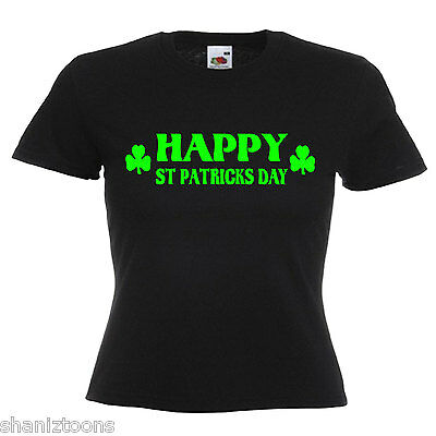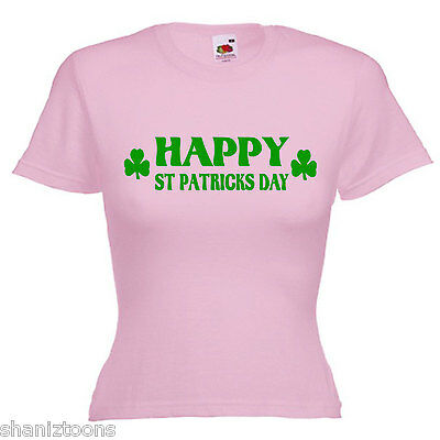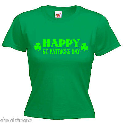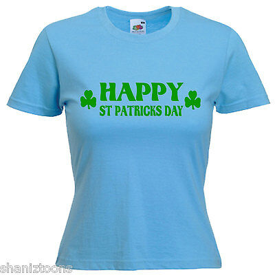 HAPPY ST PATRICKS DAY IRELAND LADIES LADY FIT T SHIRT 13 COLOURS SIZE 6 - 16 [ENDED]