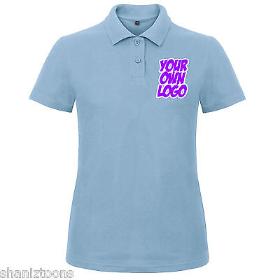 LADIES WOMENS LIGHT BLUE POLO T SHIRT BULK BUY X3 PERSONALISED DESIGN TEXT LOGO [ENDED]
