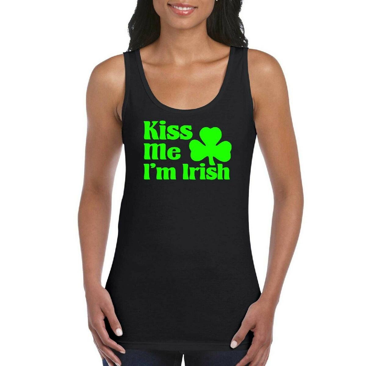 ST PATRICK'S DAY KISS ME IRISH GIRLS WOMEN'S LADIES TANK TOP VEST T SHIRT BLACK [ENDED]