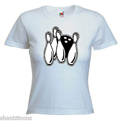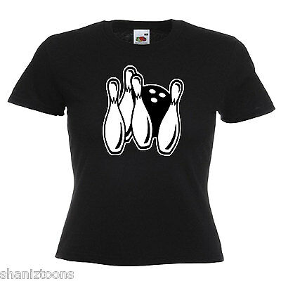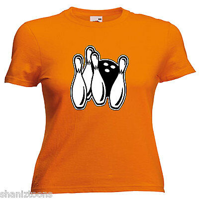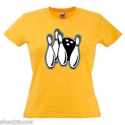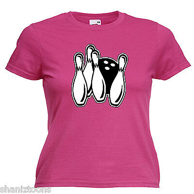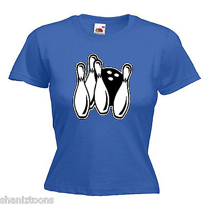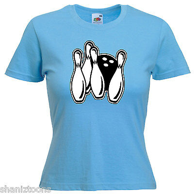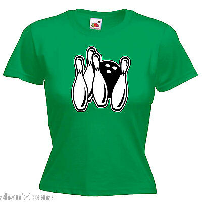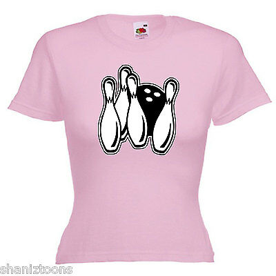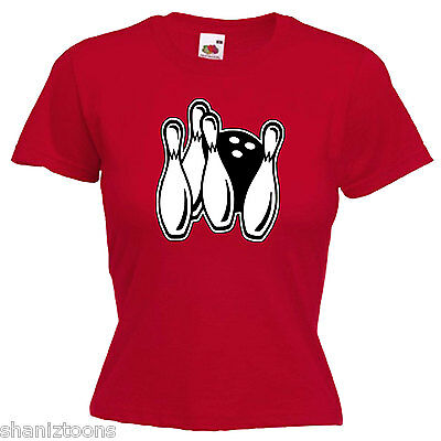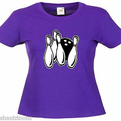 TEN PIN BOWLING LADIES LADY FIT T SHIRT 13 COLOURS SIZE 6 - 16 [ENDED]