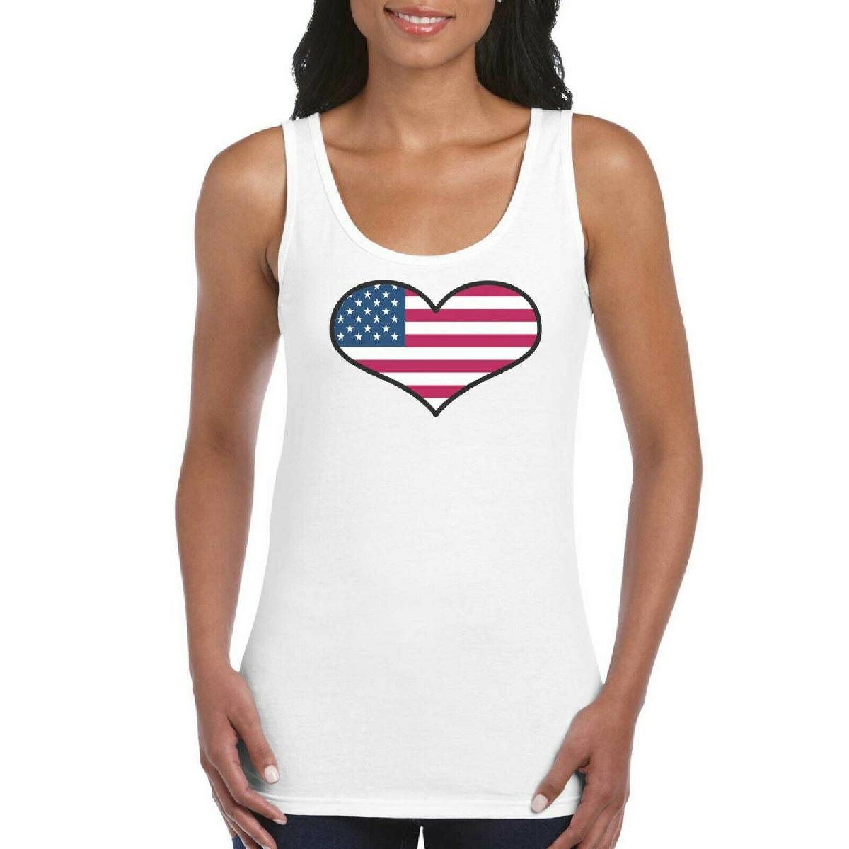USA AMERICA LOVE HEART FLAG GIRLS WOMEN'S LADIES TANK TOP VEST T SHIRT WHITE [ENDED]