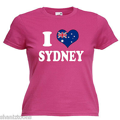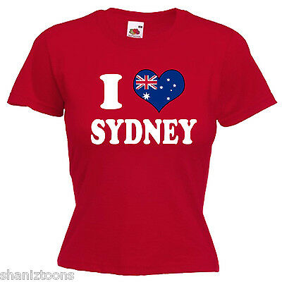 I LOVE HEART SYDNEY AUSTRALIA LADIES LADY FIT T SHIRT 13 COLOURS SIZE 6 - 16 [ENDED]