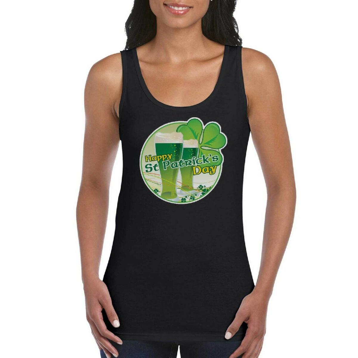 HAPPY ST PATRICK'S DAY IRELAND GIRLS WOMEN'S LADIES TANK TOP VEST T SHIRT BLACK [ENDED]