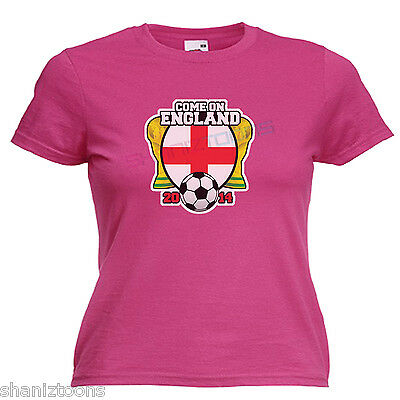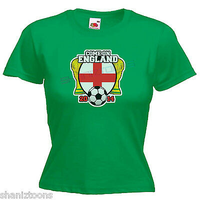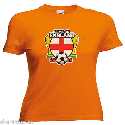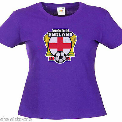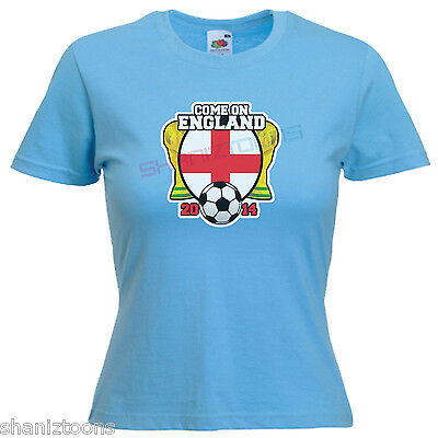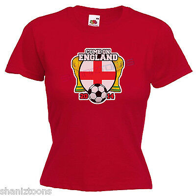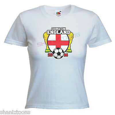 COME ON ENGLAND WORLD CUP BRAZIL 2014 LADIES LADY FIT T SHIRT SIZE 6 - 16 [ENDED]