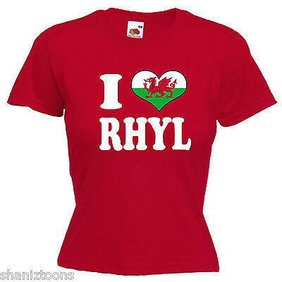 I LOVE HEART RHYL WALES LADIES LADY FIT T SHIRT 13 COLOURS SIZE 6 - 16 [ENDED]