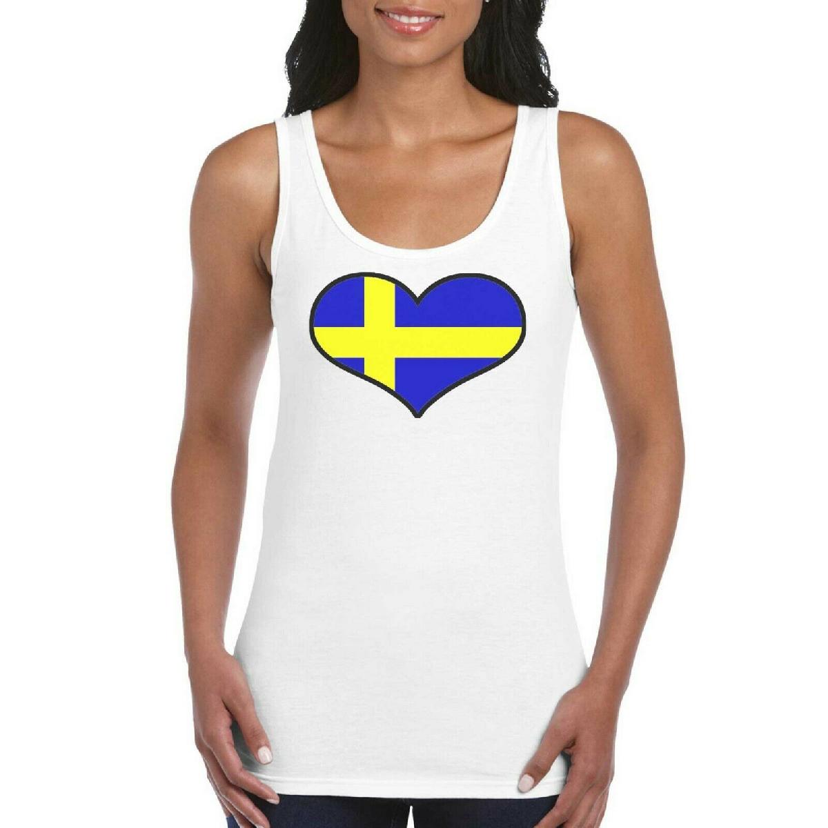 SWEDEN LOVE HEART FLAG GIRLS WOMEN'S LADIES TANK TOP VEST T SHIRT WHITE [ENDED]