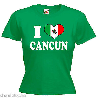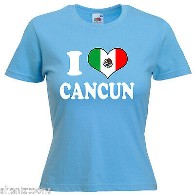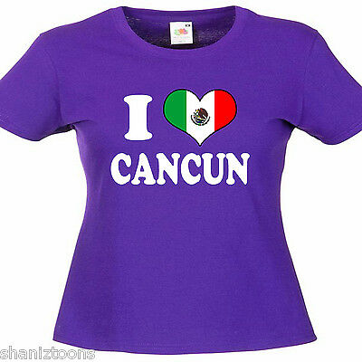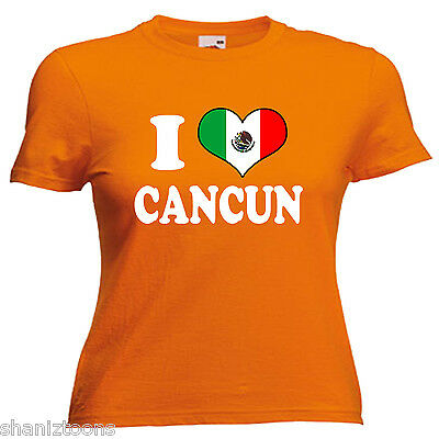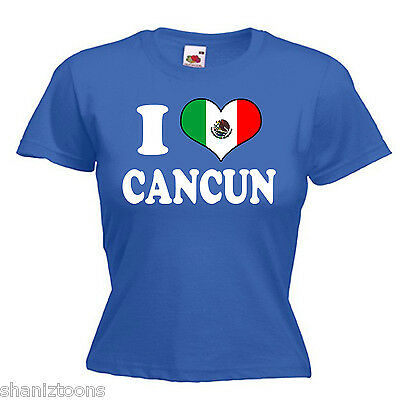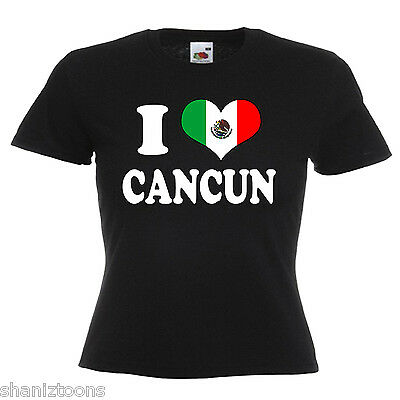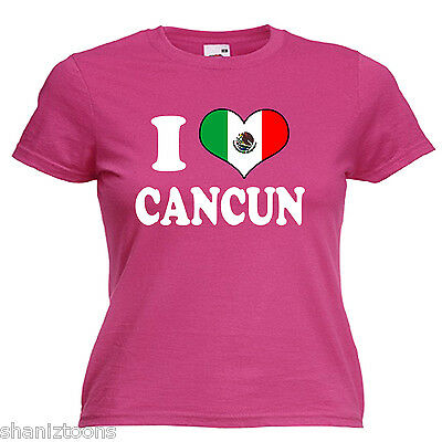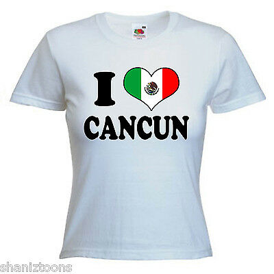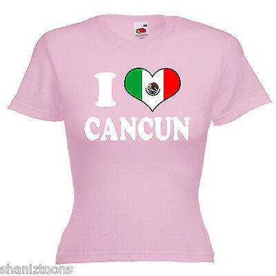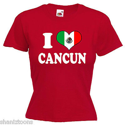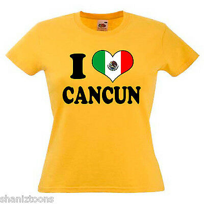 I LOVE HEART CANCUN MEXICO LADIES LADY FIT T SHIRT 13 COLOURS SIZE 6 - 16 [ENDED]