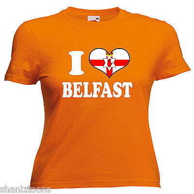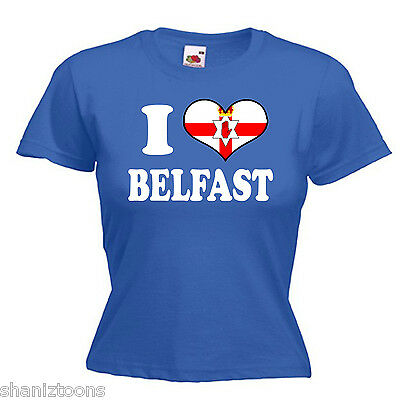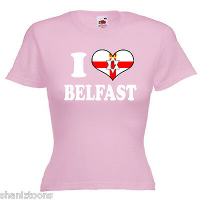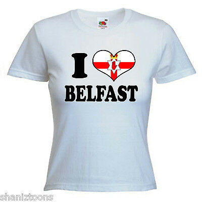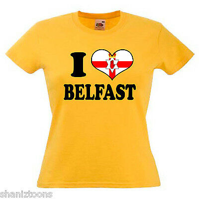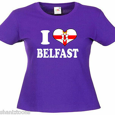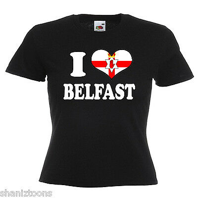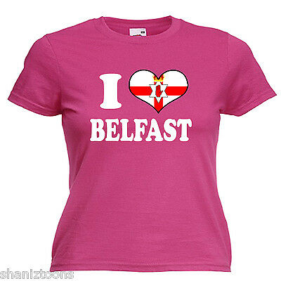 I LOVE HEART BELFAST LADIES LADY FIT T SHIRT 13 COLOURS SIZE 6 - 16 [ENDED]