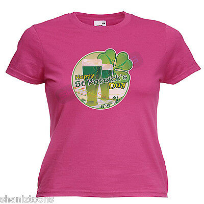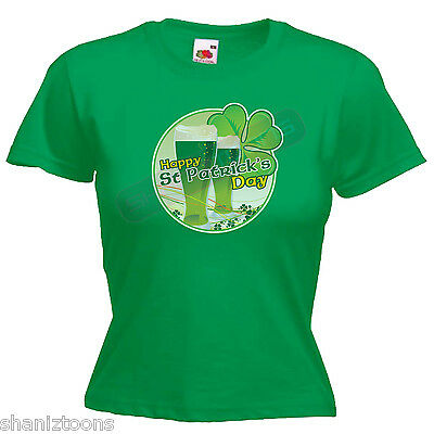 HAPPY ST PATRICK'S DAY IRISH DRINKING LADIES LADY FIT T SHIRT SIZE 6 -16 [ENDED]