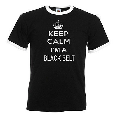 KEEP CALM BLACK BELT KARATE ADULTS MENS BLACK RINGER GIFT T SHIRT [ENDED]