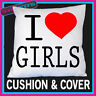 I LOVE HEART GIRLS LADIES GIFT SATIN FEEL CUSHION COVER & FILLING [ENDED]