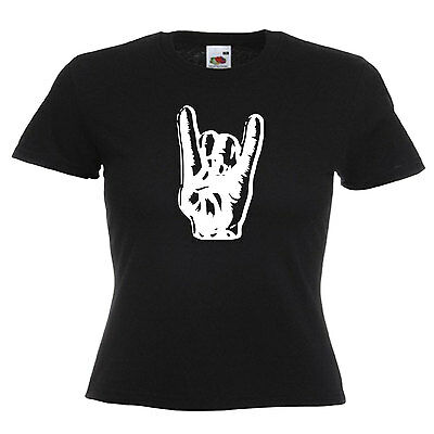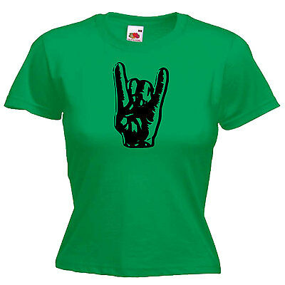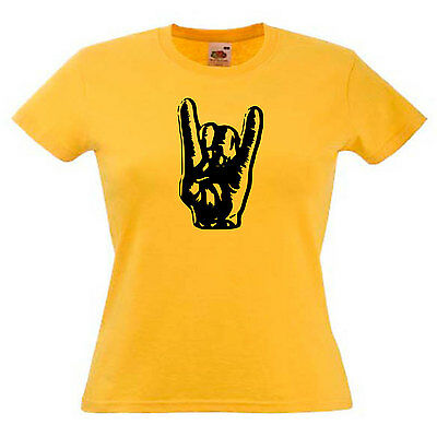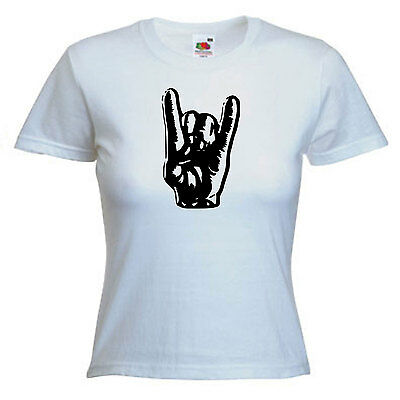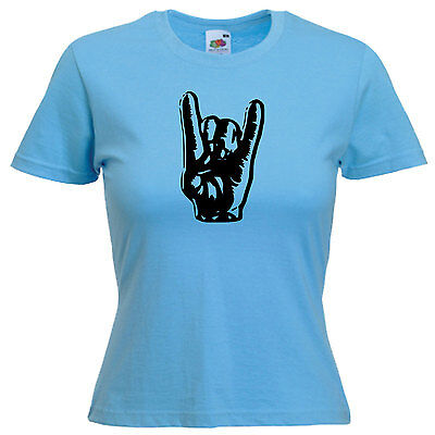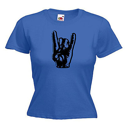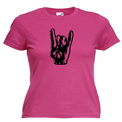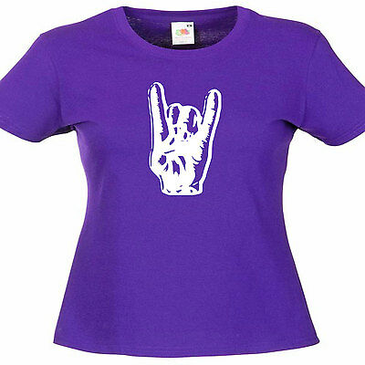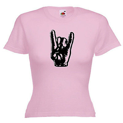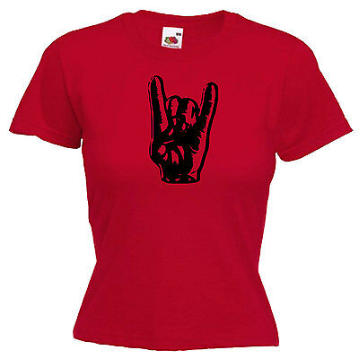 DEVILS HORNS ROCK MUSIC LADIES LADY FIT T SHIRT 13 COLOURS SIZE 6 - 16 [ENDED]