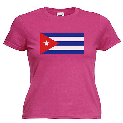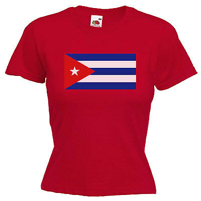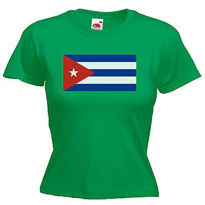 CUBA FLAG LADIES LADY FIT T SHIRT 13 COLOURS SIZE 6 - 16 [ENDED]