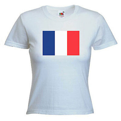 FRANCE FRENCH FLAG LADIES LADY FIT T SHIRT 13 COLOURS SIZE 6 - 16 [ENDED]