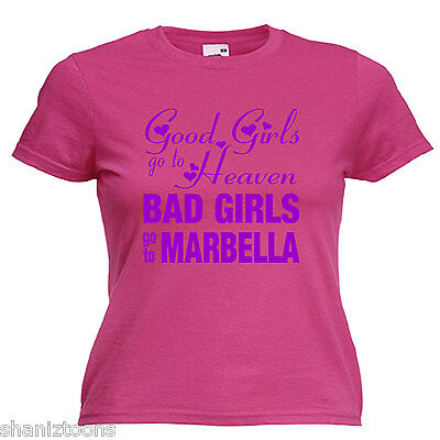 BAD GIRLS MARBELLA HEN PARTY LADIES LADY FIT T SHIRT 13 COLOURS SIZE 6 - 16 [ENDED]