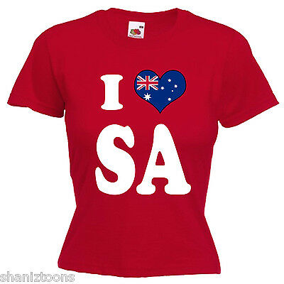 I LOVE HEART SOUTH AUSTRALIA LADIES LADY FIT T SHIRT 13 COLOURS SIZE 6 - 16 [ENDED]
