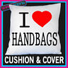 I LOVE HEART HANDBAGS LADIES GIFT SATIN FEEL CUSHION COVER & FILLING [ENDED]