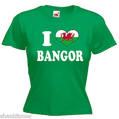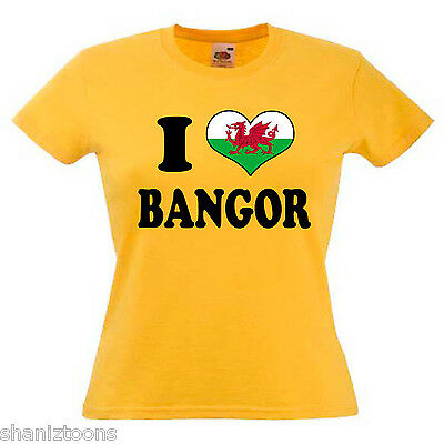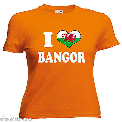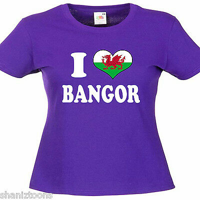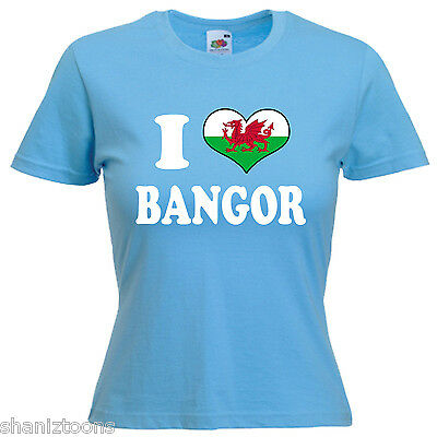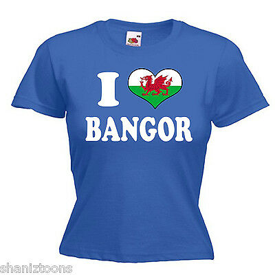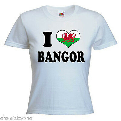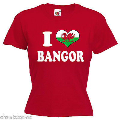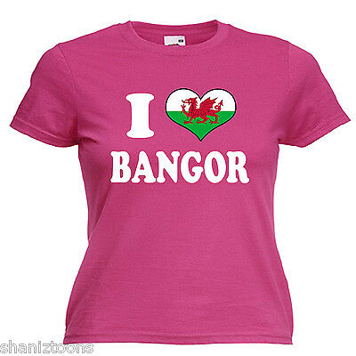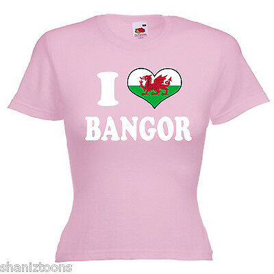I LOVE HEART BANGOR WALES LADIES WOMENS LADY FIT T SHIRT [ENDED]
