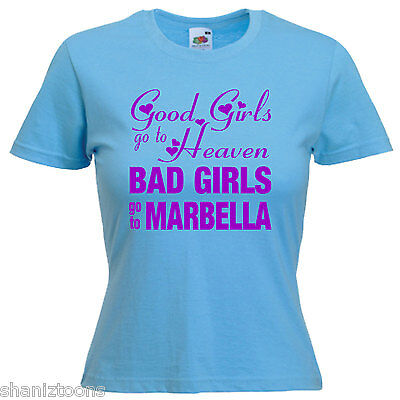 BAD GIRLS MARBELLA HEN PARTY LADIES LADY FIT T SHIRT 13 COLOURS SIZE 6 - 16 [ENDED]