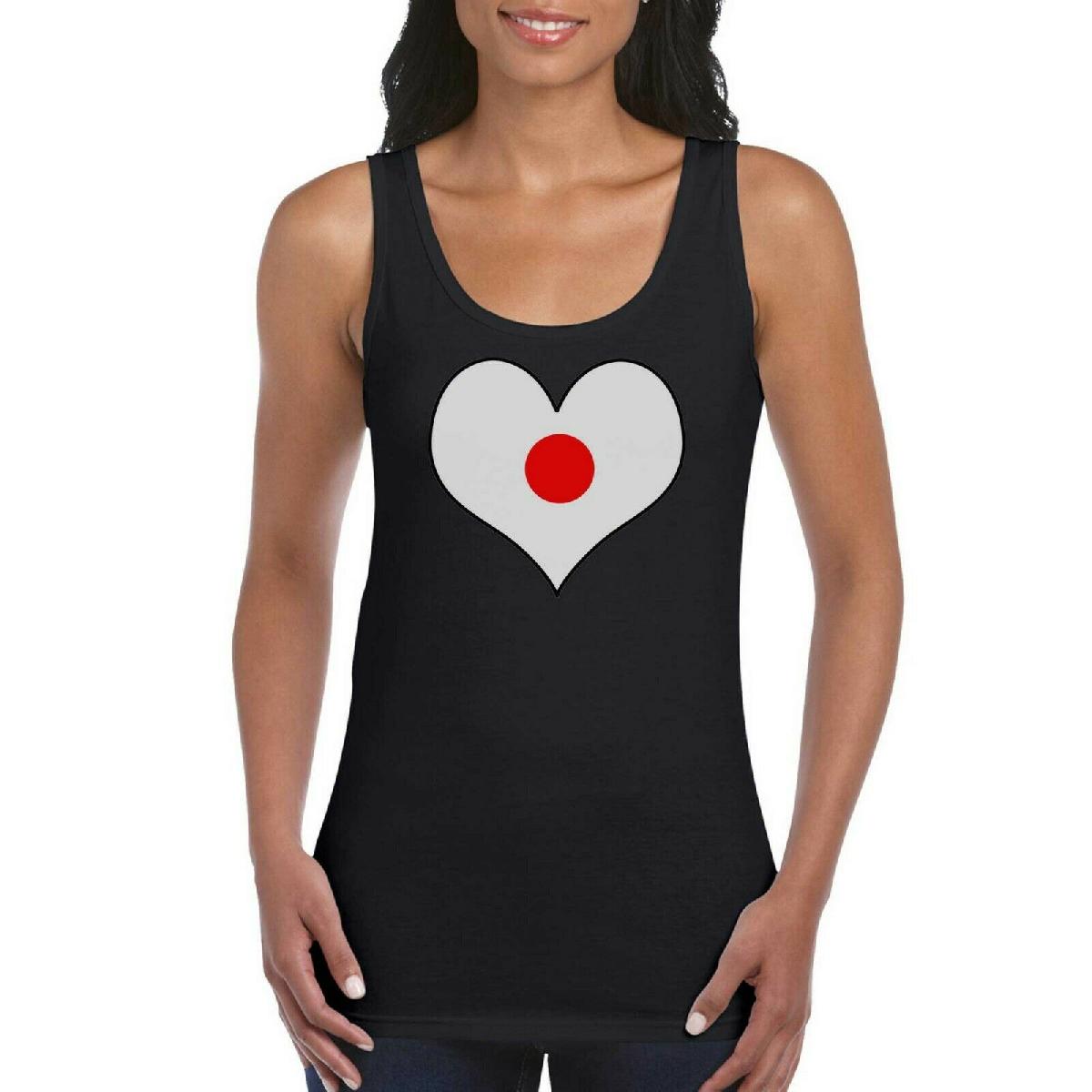 JAPAN LOVE HEART FLAG GIRLS WOMEN'S LADIES TANK TOP VEST T SHIRT BLACK [ENDED]