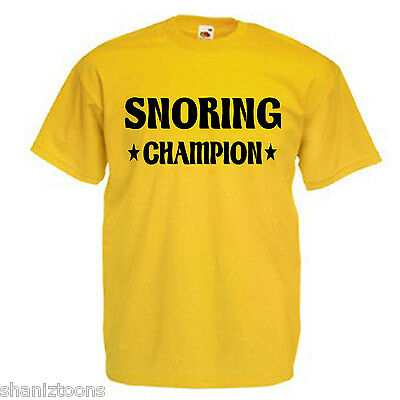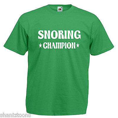 SNORING CHAMPION SNORE ADULTS MENS T SHIRT 12 COLOURS SIZE S - 3XL [ENDED]