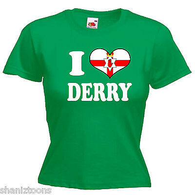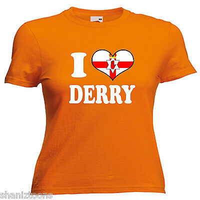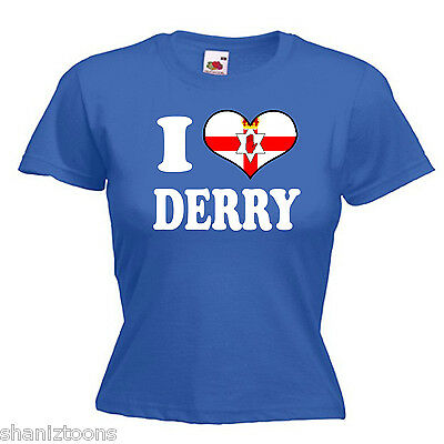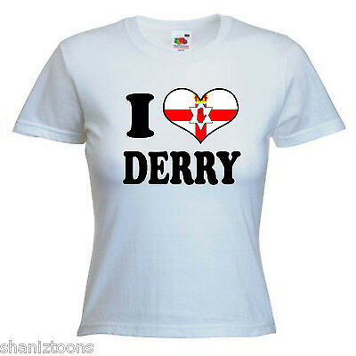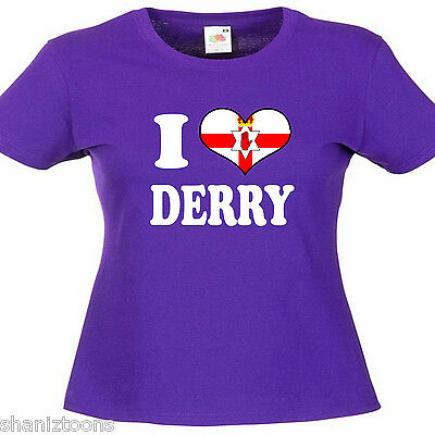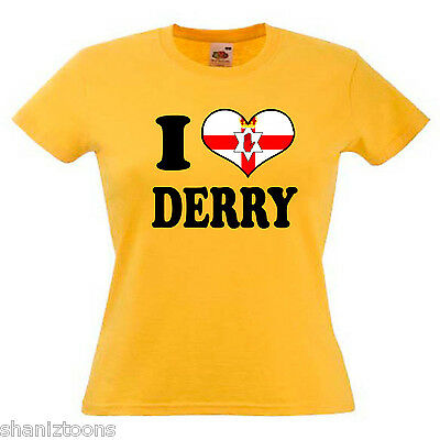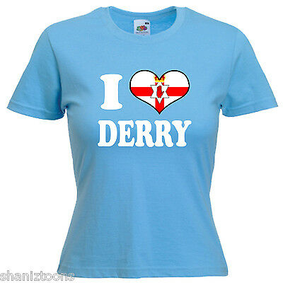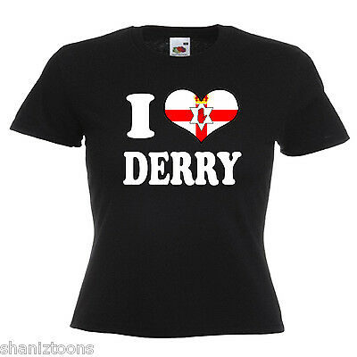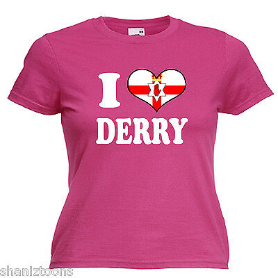 I LOVE HEART DERRY LADIES LADY FIT T SHIRT 13 COLOURS SIZE 6 - 16 [ENDED]