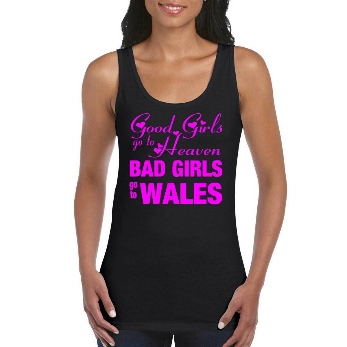 WALES GIRLS WOMEN'S LADIES TANK TOP VEST T SHIRT BLACK / NEON PINK [ENDED]