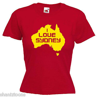 I LOVE SYDNEY AUSTRALIA LADIES LADY FIT T SHIRT 13 COLOURS SIZE 6 - 16 [ENDED]