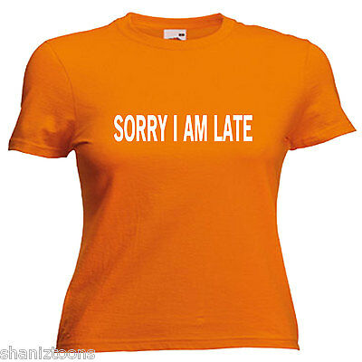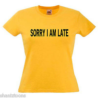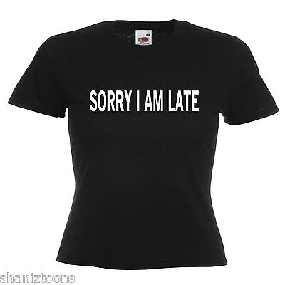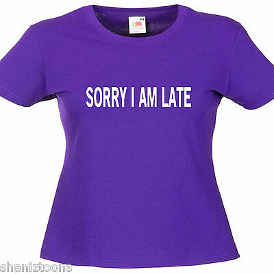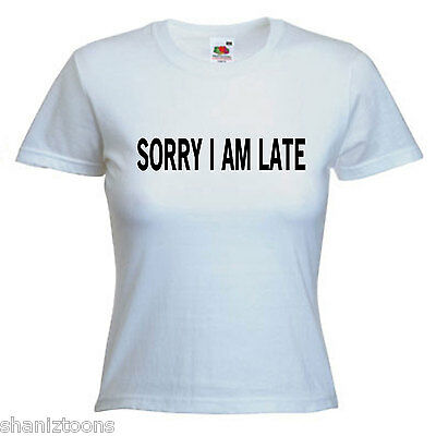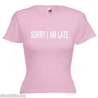 SORRY I AM LATE FUNNY LADIES LADY FIT T SHIRT 13 COLOURS SIZE 6 - 16 [ENDED]