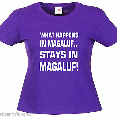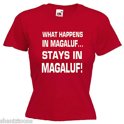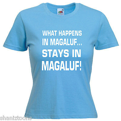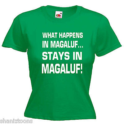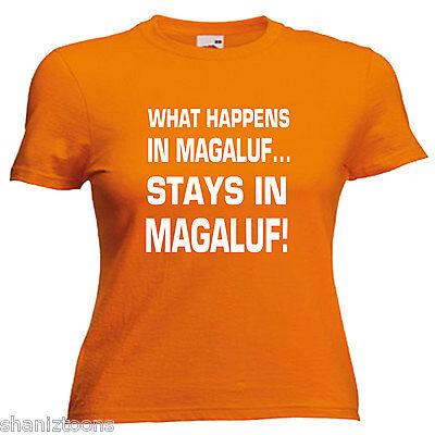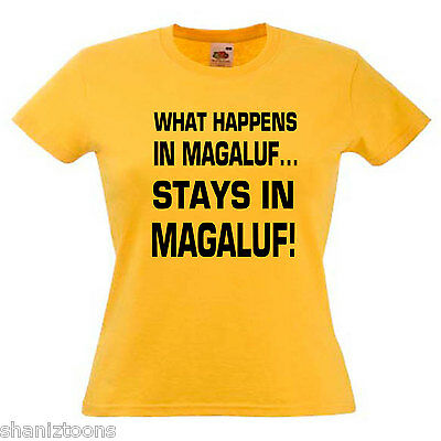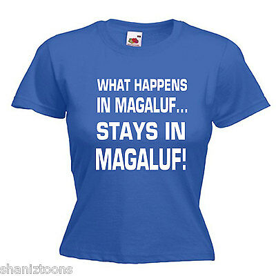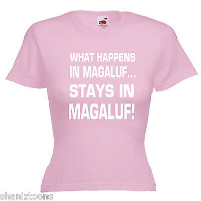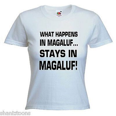 WHAT HAPPENS MAGALUF LADIES LADY FIT T SHIRT 13 COLOURS SIZE 6 - 16 [ENDED]