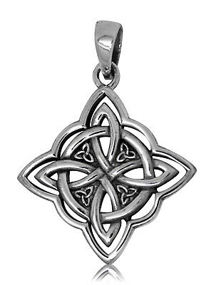 925 SOLID STERLING SILVER CELTIC WICCA NEO PAGAN 4 QUARTERS W.TRIQUETRAS PENDANT [ENDED]