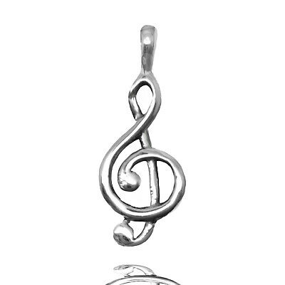 925 SOLID STERLING SILVER TREBLE G CLEF DE SOL MUSIC SYMBOL PENDANT OR NECKLACE [ENDED]