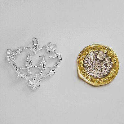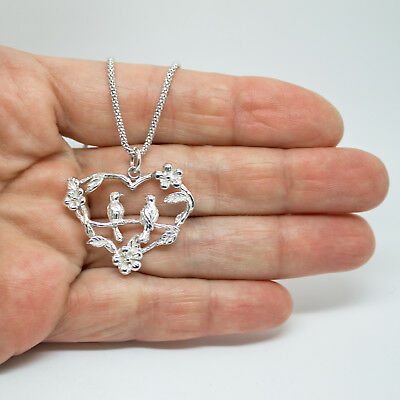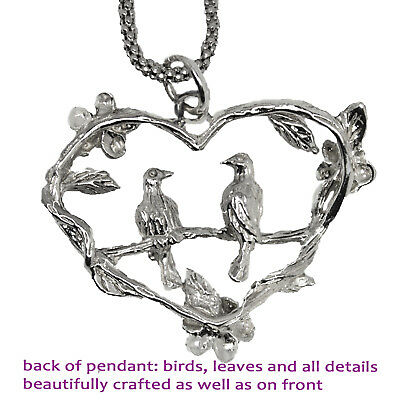 925 SOLID STERLING SILVER COUPLE OF BIRDS IN LOVE IN HEART PENDANT [ENDED]