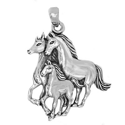 925 SOLID STERLING SILVER HORSE FAMILY: STALLION,MARE AND FOAL PENDANT [ENDED]