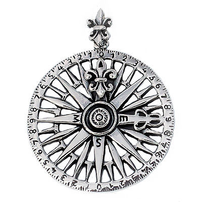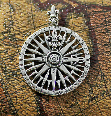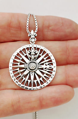 925 SOLID STERLING SILVER NAVY NAUTICAL SAILING SEA NAVIGATION COMPASS PENDANT [ENDED]