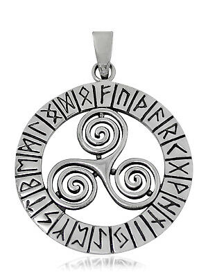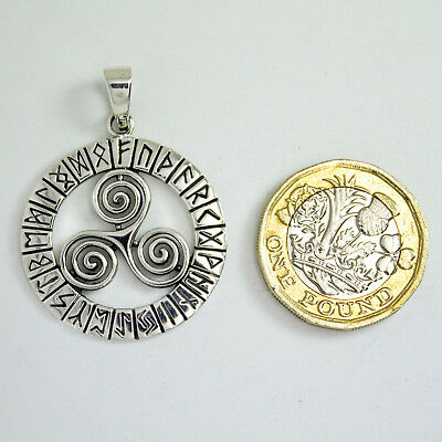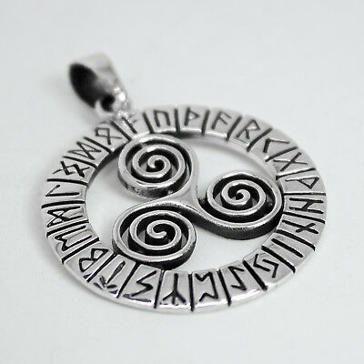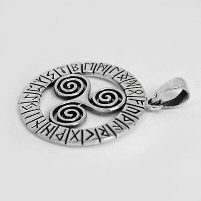 925 SOLID STERLING SILVER TRIPLE SPIRAL TRISKELE WITH RUNES PENDANT [ENDED]