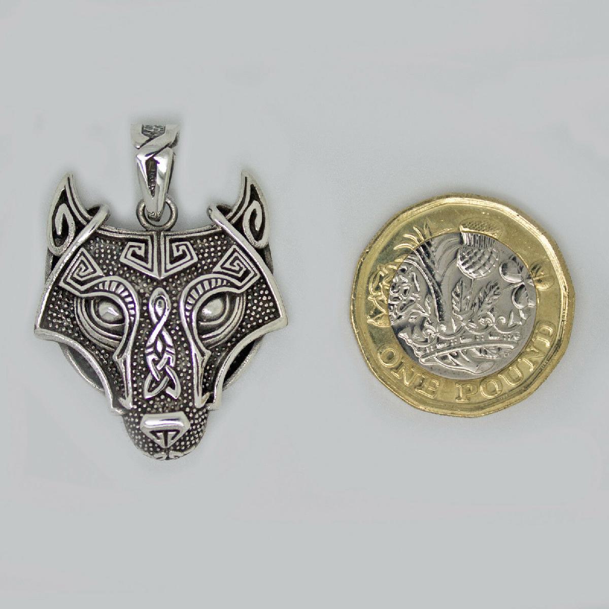 925 SOLID STERLING SILVER CELTIC WOLF WITH TRIQUETRAS AND RENEWAL SYMBOL PENDANT [ENDED]