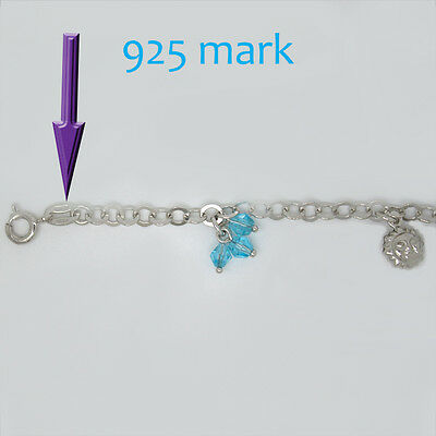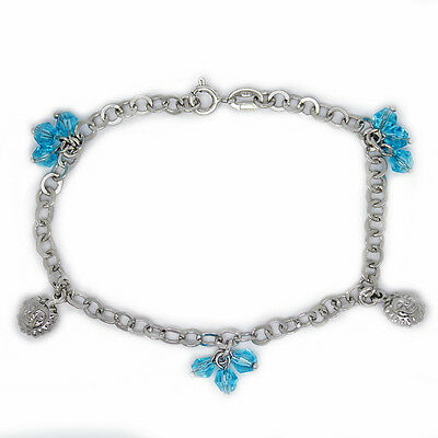 925 SOLID STERLING SILVER BRACELET WITH 2 "SMILEY SUNS" AND BLUE CRYSTAL BEADS [ENDED]