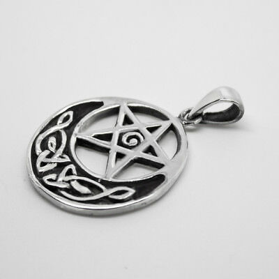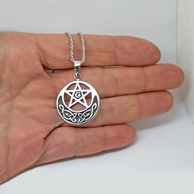925 SOLID STERLING SILVER WICCA NEO PAGAN PENTACLE PENTAGRAM CELTIC KNOT PENDANT [ENDED]