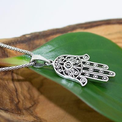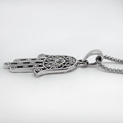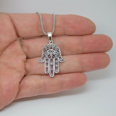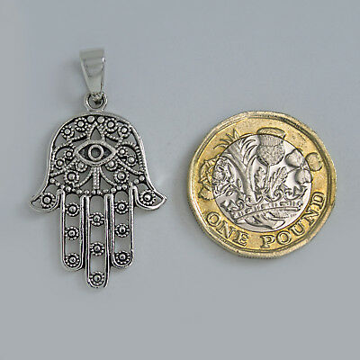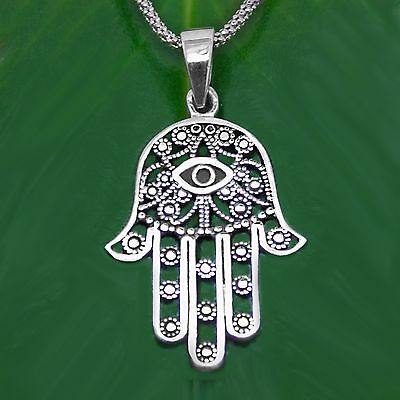 925 SOLID STERLING SILVER MEDIUM HAMSA HAND OF FATIMA, MIRIAM NECKLACE [ENDED]